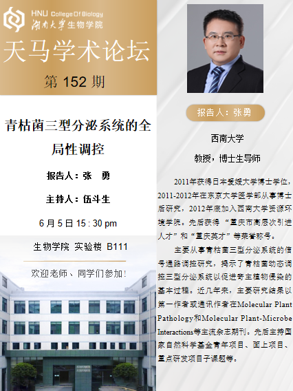 學(xué)術(shù)地點 生物學(xué)院實驗樓B111 主講人 張勇