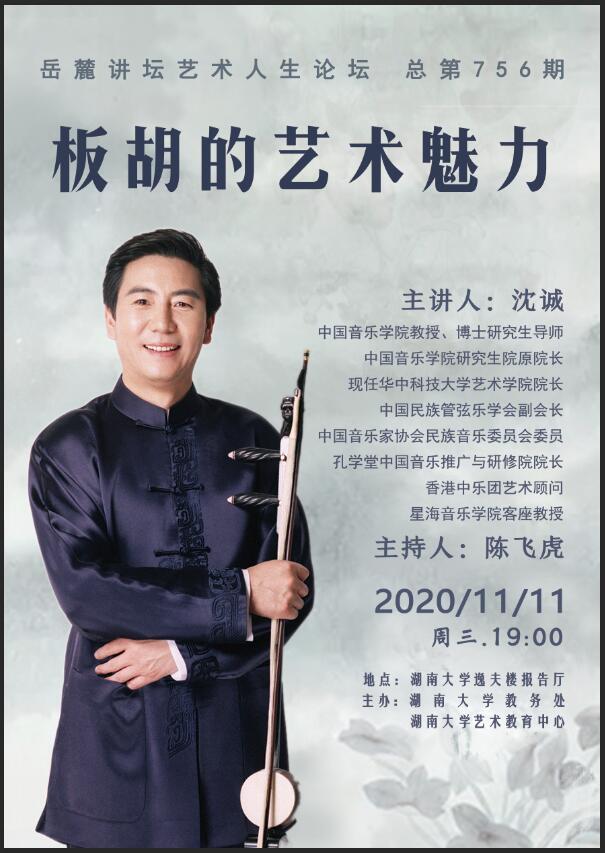 主講人:沈誠(中國音樂學院教授、博士研究生導師,中國音樂學院研究生院院長,現任華中科技大學藝術學院院長,中國民族管弦樂學會副會長,中國音樂家協會民族音樂委員會委員,孔學堂中國音樂推廣與研修院院長,香港中樂團藝術顧問,星海音樂學院客座教授)