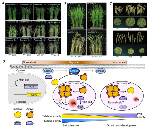 2023/06/25生物學(xué)院劉選明/林建中團(tuán)隊(duì)發(fā)現(xiàn)磷酸酶PC1是平衡水稻耐鹽和生長(zhǎng)發(fā)育的分子開關(guān)近日,生物學(xué)院劉選明/林建中團(tuán)隊(duì)從水稻中發(fā)現(xiàn)了一個(gè)調(diào)控耐鹽性的蛋白質(zhì)磷酸酶PC1(Phosphatase ofCatalase1),提出了PC1作為CAT響應(yīng)鹽脅迫的分子開關(guān)參與平衡水稻耐鹽和正常生長(zhǎng)發(fā)育的新機(jī)制。該研究成果為解析...