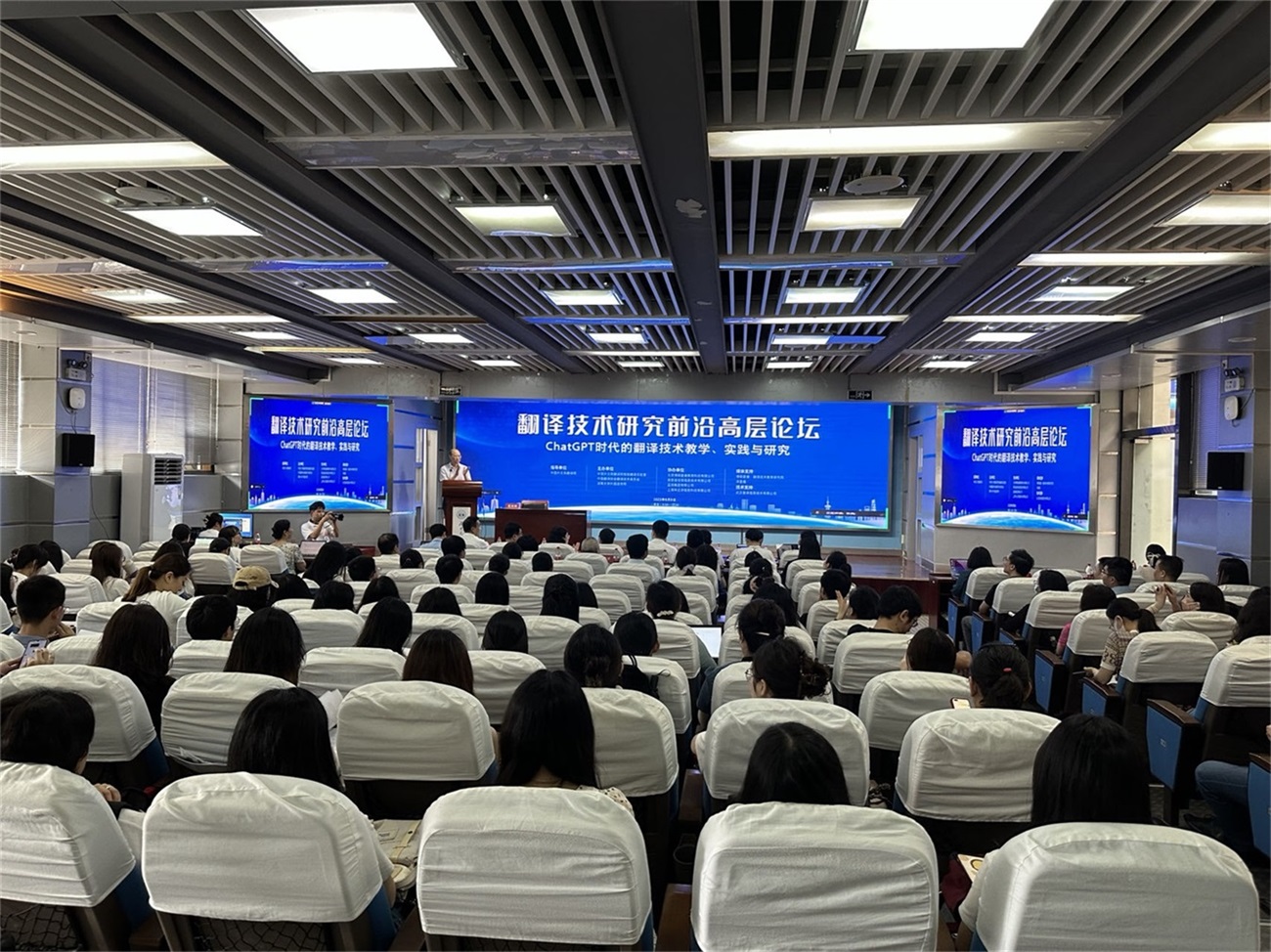 2023/06/13翻譯技術(shù)研究前沿高層論壇在我校舉行6月9日,由中國(guó)外文局翻譯院指導(dǎo)、湖南大學(xué)外國(guó)語學(xué)院聯(lián)合中國(guó)外文局翻譯院智能翻譯實(shí)驗(yàn)室、中國(guó)翻譯協(xié)會(huì)翻譯技術(shù)委員會(huì)共同主辦的“翻譯技術(shù)研究前沿高層論壇:ChatGPT時(shí)代的翻譯技術(shù)教學(xué)、實(shí)踐與研究”舉行。副...