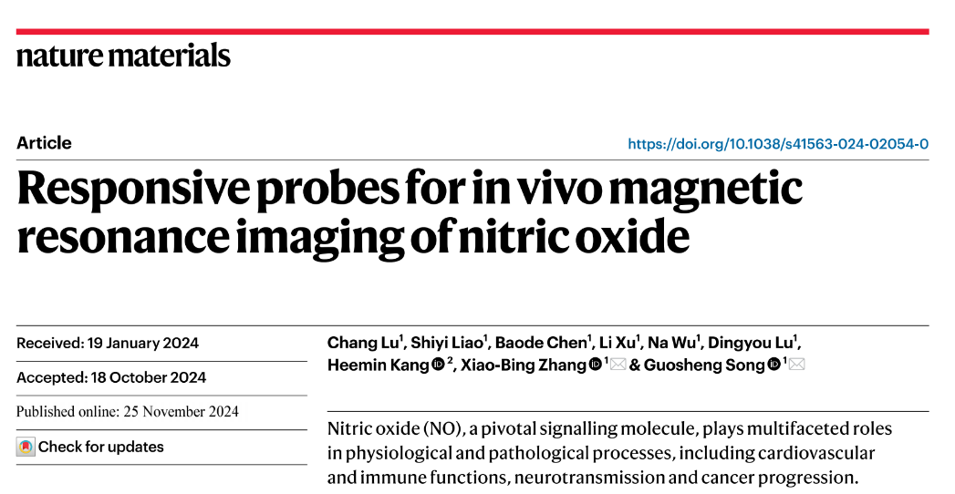 2024/11/27化工院宋國勝教授和張曉兵教授在磁共振分子影像研究中取得重要突破一氧化氮(NO)是人體中重要的信號分子,參與調節血流、維持細胞活力及保護心肌和神經細胞等多種生理過程。NO 信號異常與心腦血管疾病、神經退行性疾病、肝炎、糖尿病和癌癥等密切相關。研究表明,NO 的生物學效...